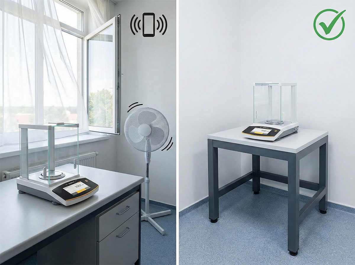 I ta nejlepší váha Sartorius Cubis II bude vážit chybně, pokud stojí na nestabilním stole u klimatizace. Častou chybou je nákup drahé váhy bez investice do antivibračního stolu nebo ionizátoru. Statická elektřina je totiž tichým zabijákem přesnosti, zejména u mikro a semimikro vah.
